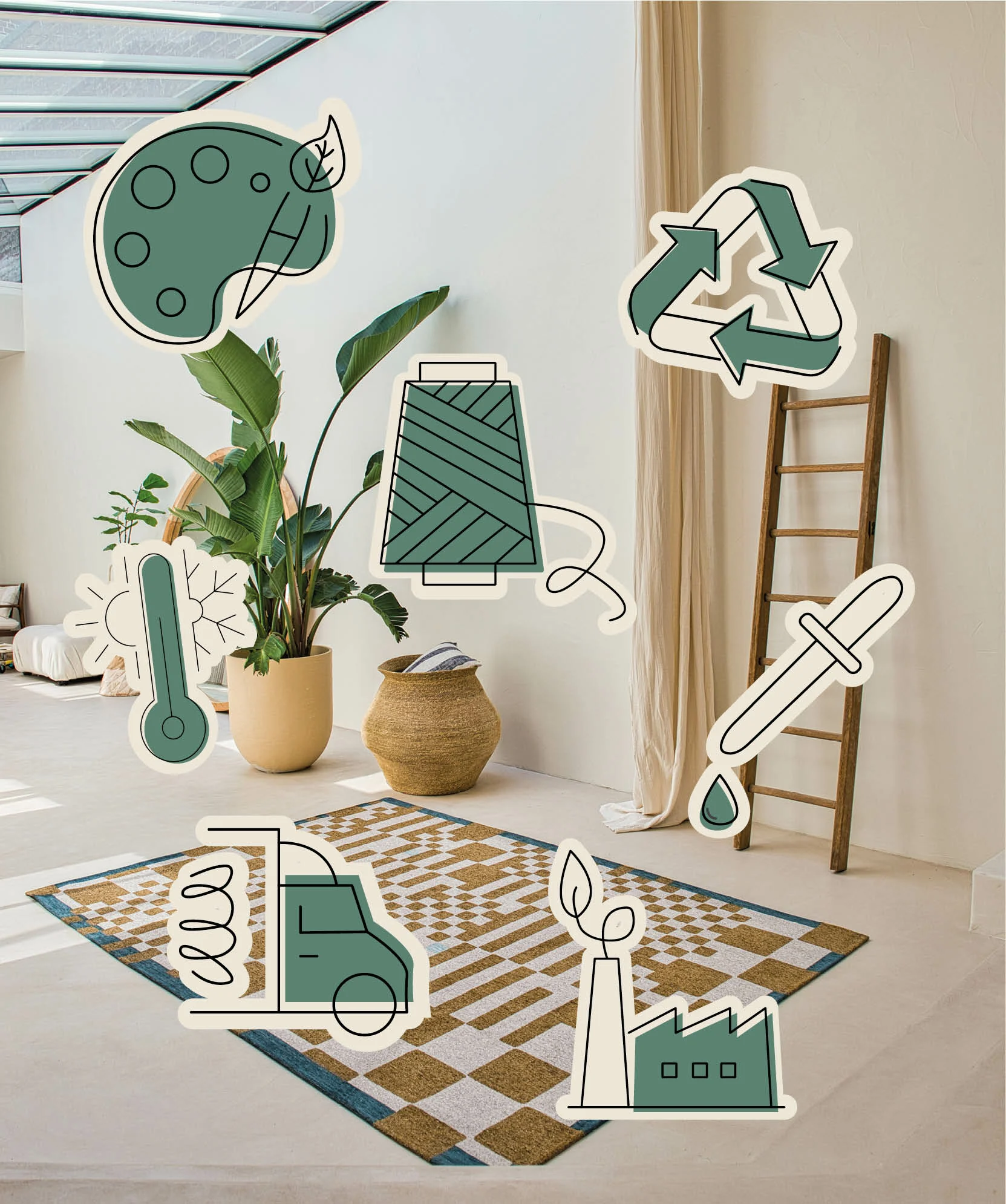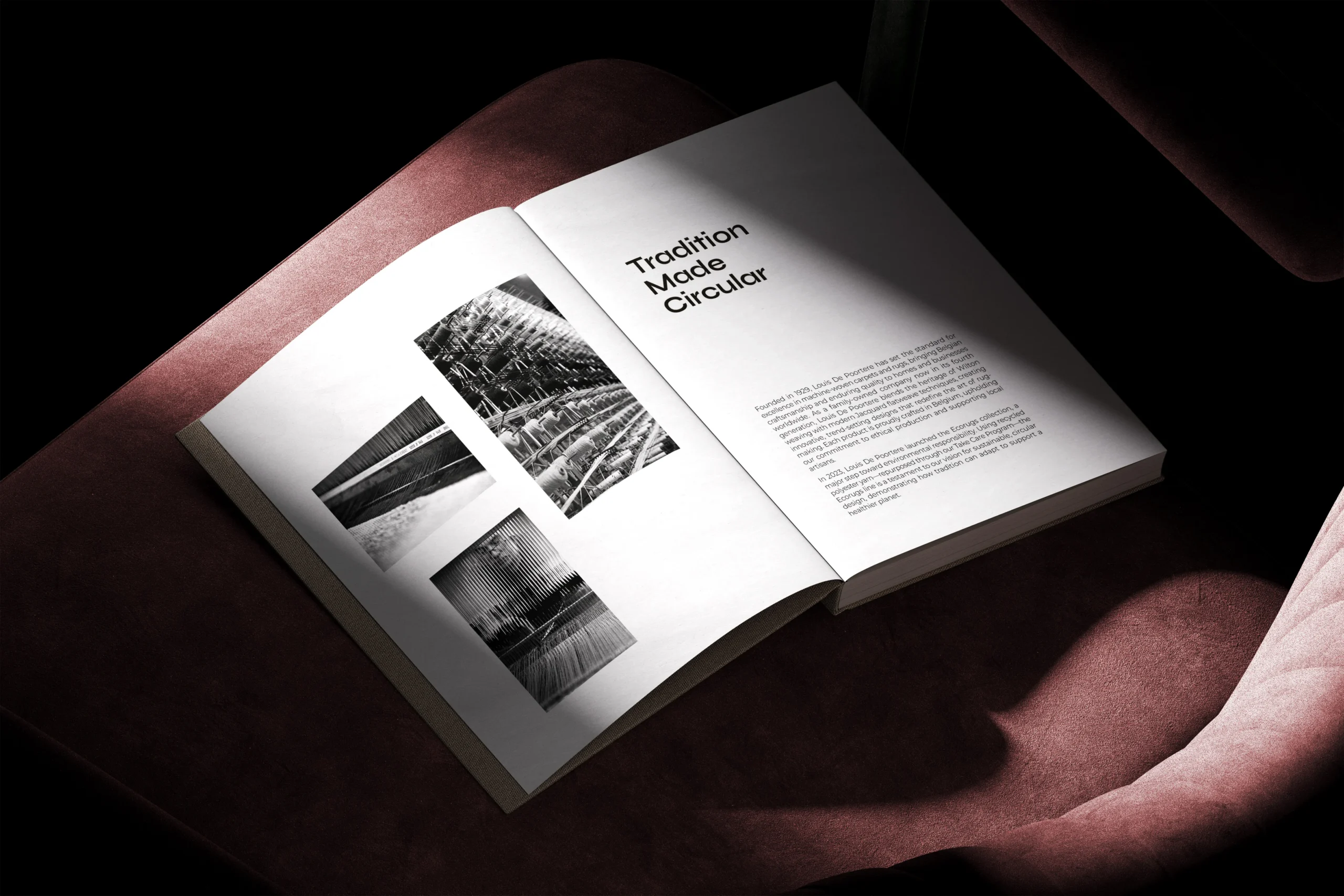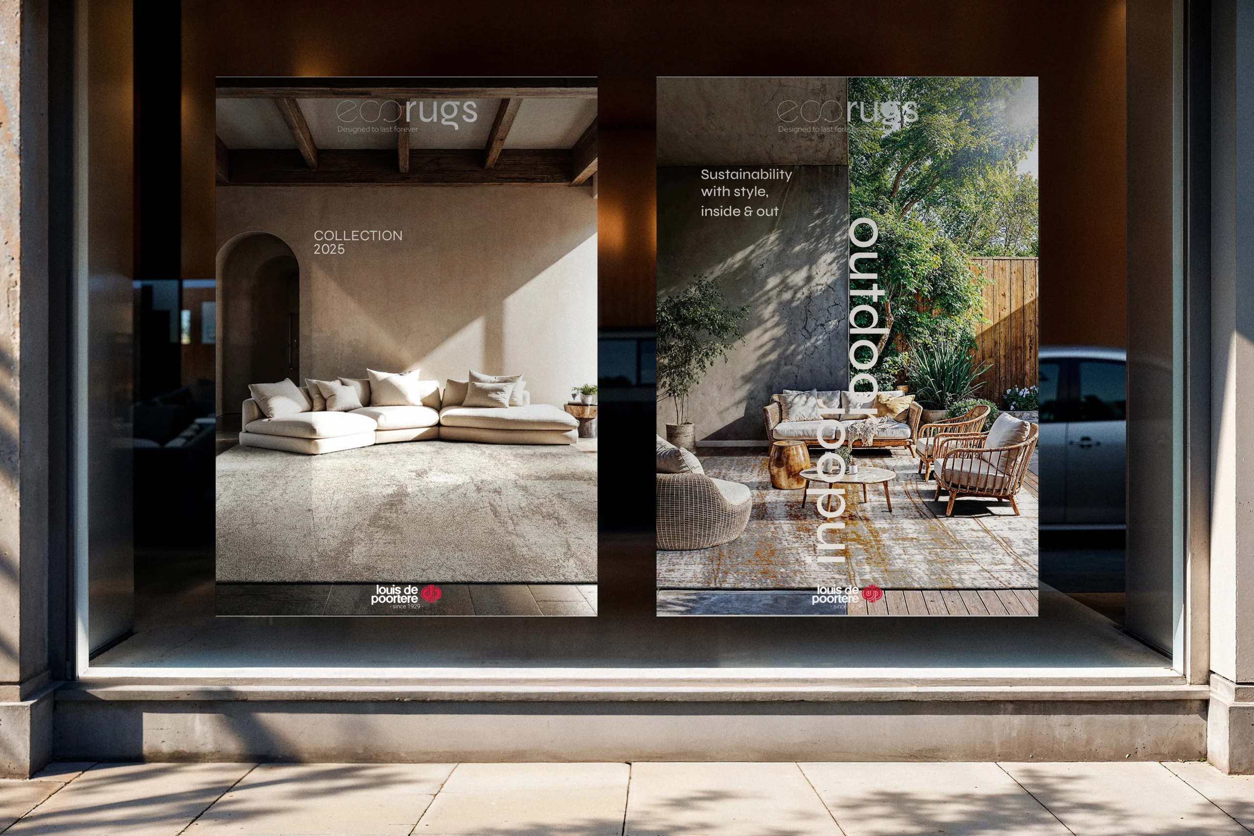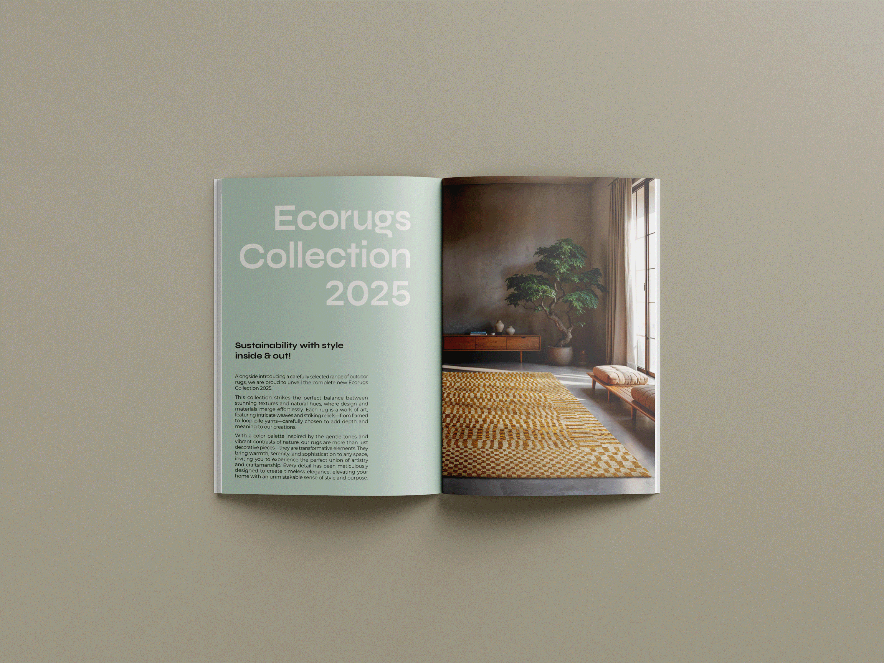Les supports de communication adoptent une approche moderne et minimaliste et valorisent à la fois l’esthétique contemporaine des tapis et l’engagement écologique de la marque.